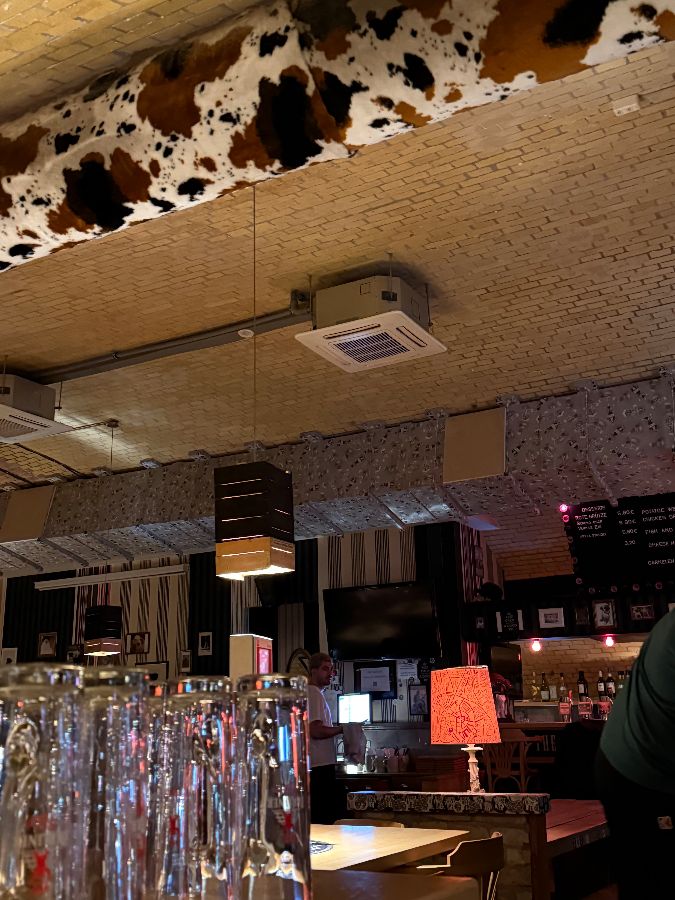 깔끔하고 모던한 내부 인테리어와 편안한 좌석 배치. 펍의 세련되면서도 안락한 분위기를 잘 보여준다.