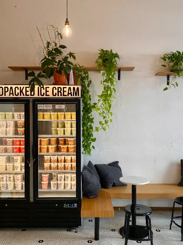 가게 내부는 아담하고 테이블이 몇 개 없지만, 대부분의 사람들은 테이크 아웃을 해서 밖에서 즐기는 편이다. 이미지 9에서처럼, 가게 앞 벤치에 앉아 아이스크림을 먹으며 여유를 즐기는 사람들을 쉽게 볼 수 있다.