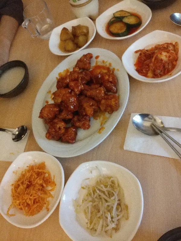 메뉴판을 펼쳐 들고 한참을 고민했다. 김치찌개, 된장찌개, 불고기, 짬뽕… 정말 다양한 메뉴들이 눈앞에 펼쳐졌다. 마치 한국의 흔한 식당에 와 있는 듯한 착각마저 들었다. 특히 “짬뽕을 제일 잘하신다”는 리뷰가 눈에 띄었다. 하지만 오랜 고민 끝에, 우리는 돼지불고기와 양념치킨을 주문하기로 했다. 룸메이트는 “오삼불고기, 양념치킨 등 다른 메뉴도 다 괜찮다”며 기대를 한껏 높였다.