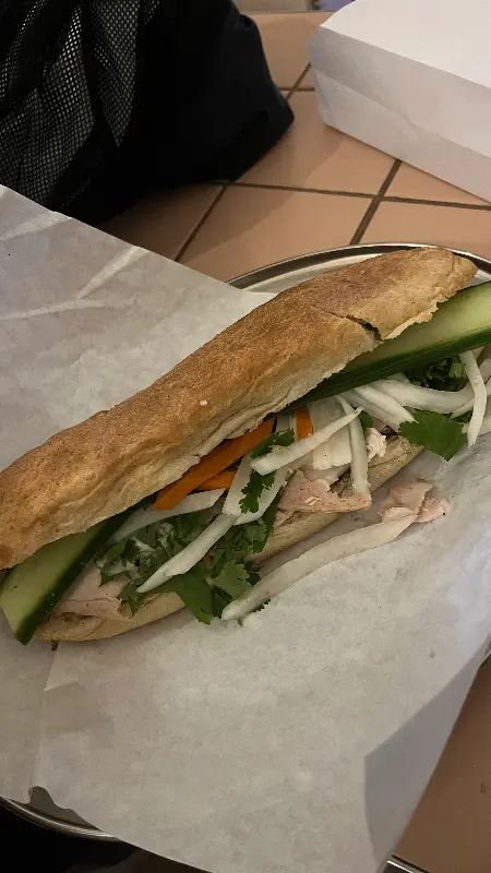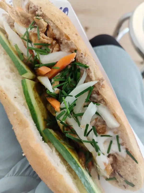 신선한 야채와 두부, 채식 파테의 조화가 돋보이는 비건 반미는 건강하고 맛있는 선택입니다.