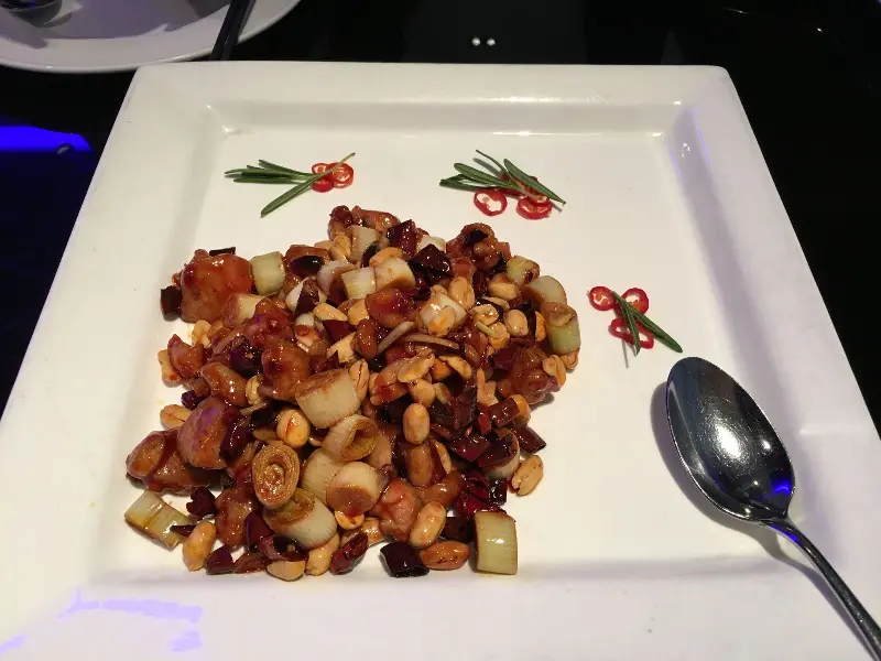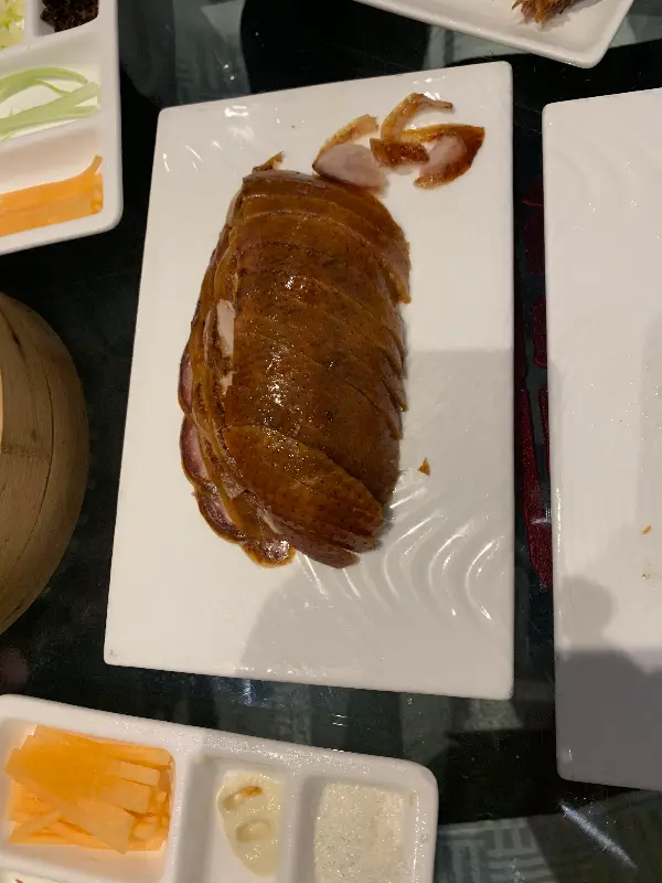 드디어 기다리고 기다리던 베이징덕이 등장했습니다. 윤기가 흐르는 오리 껍질은 보는 것만으로도 군침이 돌았습니다. 능숙한 솜씨의 요리사가 직접 오리를 해체하여 얇게 저며주었고, 함께 제공되는 팬케이크, 오이, 파채, 소스를 곁들여 맛보는 순간, 감탄사가 절로 나왔습니다. 바삭하면서도 부드러운 오리 껍질의 식감과 고소한 풍미는 잊을 수 없는 맛이었고, 신선한 채소와 소스가 어우러져 완벽한 조화를 이루었습니다.
