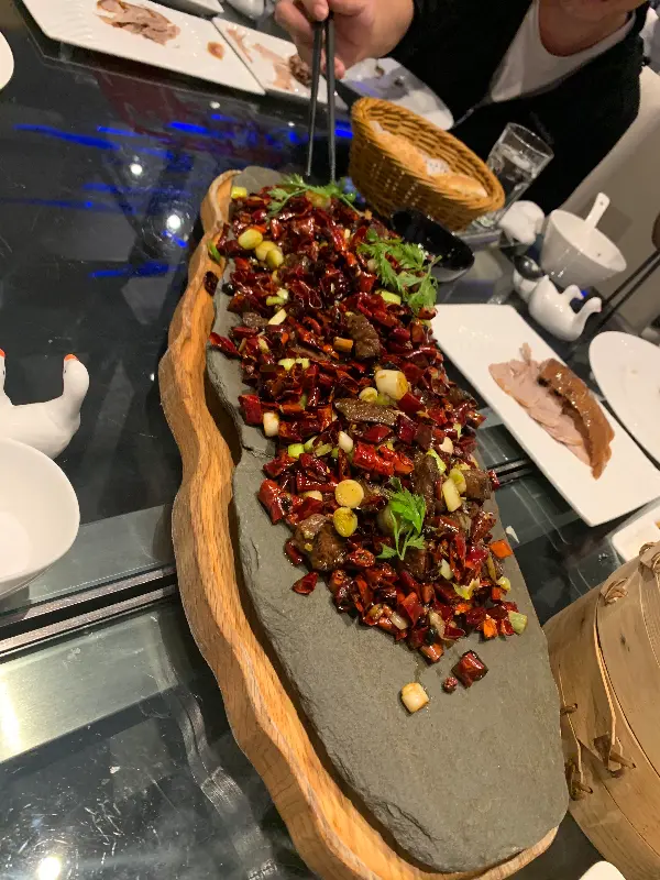 베이징덕과 함께 주문한 블랙 페퍼 비프는 예상외의 강렬한 인상을 남겼습니다. 큼지막하게 썰린 소고기는 부드러우면서도 쫄깃한 식감을 자랑했고, 블랙 페퍼의 매콤한 향이 입안 가득 퍼져나갔습니다. 특히, 독특한 플레이팅이 눈길을 사로잡았는데, 뜨겁게 달궈진 돌판 위에 올려져 나와 오랫동안 따뜻하게 즐길 수 있었습니다.