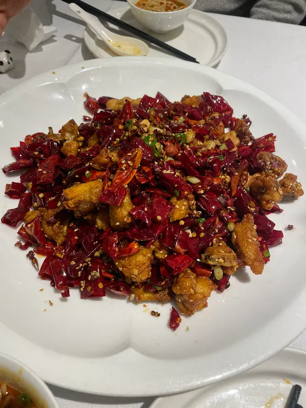 바삭하게 튀겨진 닭고기를 매콤한 고추와 함께 볶아낸 요리는 강렬한 비주얼만큼이나 매콤한 맛이 인상적이었습니다. 튀김옷은 바삭했고, 닭고기는 촉촉함을 유지하고 있었죠. 매운 음식을 좋아하는 분들에게 강력 추천하고 싶은 메뉴입니다.