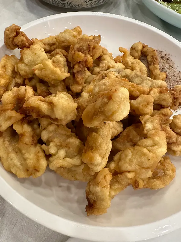 바삭하게 튀겨진 튀김 돼지고기는 탕수육과는 또 다른 매력을 선사합니다. 겉은 바삭하고 속은 촉촉한 돼지고기는, 고소하면서도 담백한 맛이 일품입니다. 탕수육처럼 달콤한 소스에 찍어 먹는 것도 좋지만, 소금에 살짝 찍어 먹으면 돼지고기 본연의 풍미를 더욱 진하게 느낄 수 있습니다.