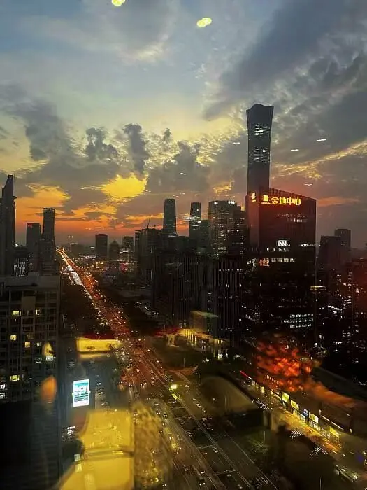 엘리베이터 문이 열리자, 눈앞에 펼쳐진 것은 화려한 도시의 야경과 아늑한 레스토랑의 조화였습니다. 은은한 조명 아래 테이블들은 저마다의 이야기를 속삭이는 듯했고, 창밖으로는 180도로 펼쳐진 베이징의 스카이라인이 그림처럼 펼쳐졌습니다. 특히 해질 무렵 방문하면 붉게 물드는 하늘과 도시의 불빛이 어우러져 잊을 수 없는 풍경을 선사합니다.