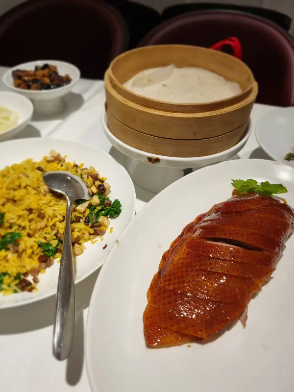 윤기가 흐르는 베이징덕과 고슬고슬한 볶음밥의 환상적인 조화.