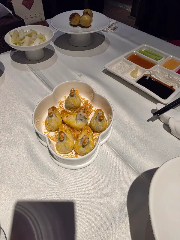 직원분이 베이징덕을 싸 먹는 방법을 친절하게 설명해주셨습니다. 얇은 전병 위에 오리 껍질과 살코기를 올리고, 취향에 맞게 채소와 소스를 곁들여 먹으면 됩니다. 첫 입을 베어 무는 순간, 바삭한 껍질촉촉한 살코기가 입안에서 조화롭게 어우러지는 황홀한 맛에 눈이 번쩍 뜨였습니다. 특히 고소한 기름이 입안 가득 퍼지는 껍질의 풍미는 정말 잊을 수 없었습니다.