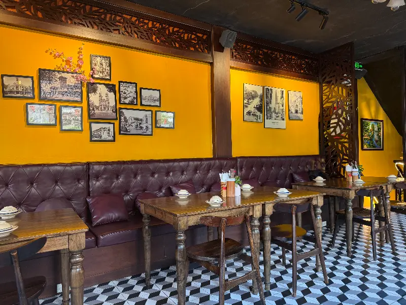 소울 벤탄에 들어서는 순간, 마치 시간 여행을 떠난 듯한 기분이 들었습니다. 고풍스러운 인테리어와 은은한 조명이 아늑한 분위기를 자아내며, 벤탄 시장의 번잡함과는 완전히 다른 세상이 펼쳐집니다. 벽면을 가득 채운 흑백 사진들은 호치민의 과거를 담고 있으며, 마치 작은 갤러리에 온 듯한 느낌을 줍니다.