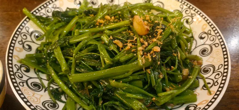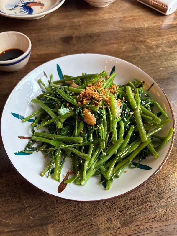 모닝글로리 볶음은 신선한 채소의 아삭한 식감과 마늘의 향긋한 풍미가 어우러져 훌륭한 맛을 자랑했습니다. 짭짤하면서도 담백한 맛은 밥반찬으로도, 맥주 안주로도 완벽했습니다.