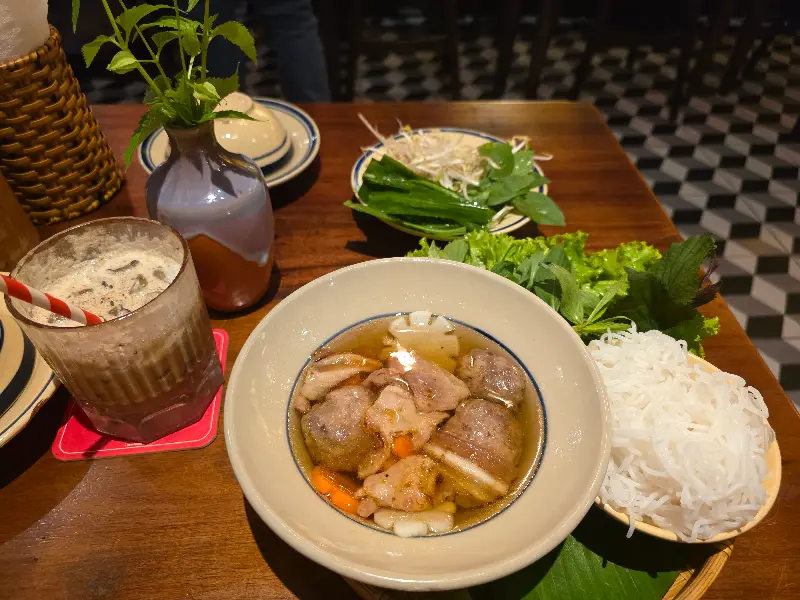 소울 벤탄의 메뉴는 베트남 전통 요리부터 서양식 요리까지 다양하게 구성되어 있어, 누구나 자신의 취향에 맞는 음식을 즐길 수 있습니다. 저는 이곳의 대표 메뉴인 분짜와 모닝글로리 볶음을 주문했습니다.