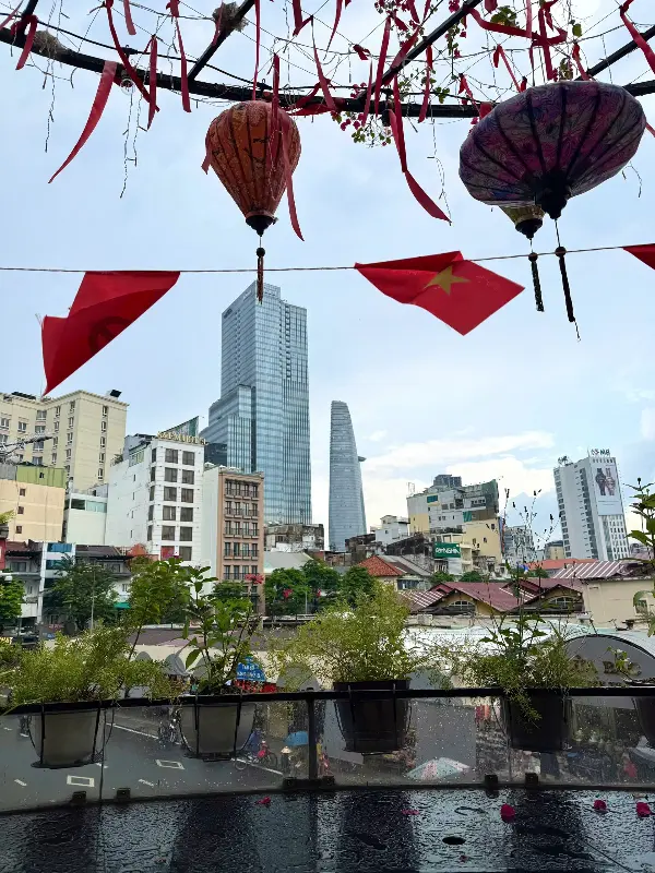 붉은 깃발과 베트남 전통 등이 장식된 루프탑은 독특한 분위기를 자아냅니다. 이곳에서 시원한 칵테일 한 잔과 함께 호치민의 야경을 감상하면 더할 나위 없이 행복한 시간을 보낼 수 있을 것입니다.