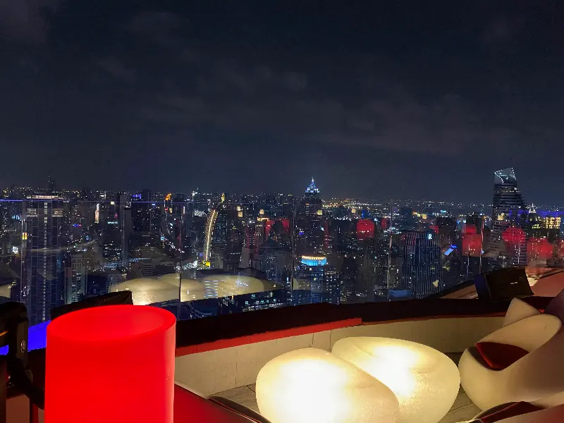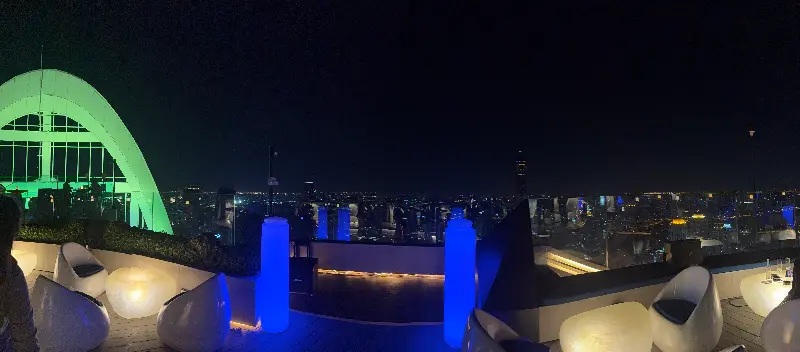 엘리베이터 문이 열리는 순간, 탄성이 절로 나왔다. 탁 트인 공간 너머로 펼쳐지는 방콕의 야경은 그야말로 장관이었다.