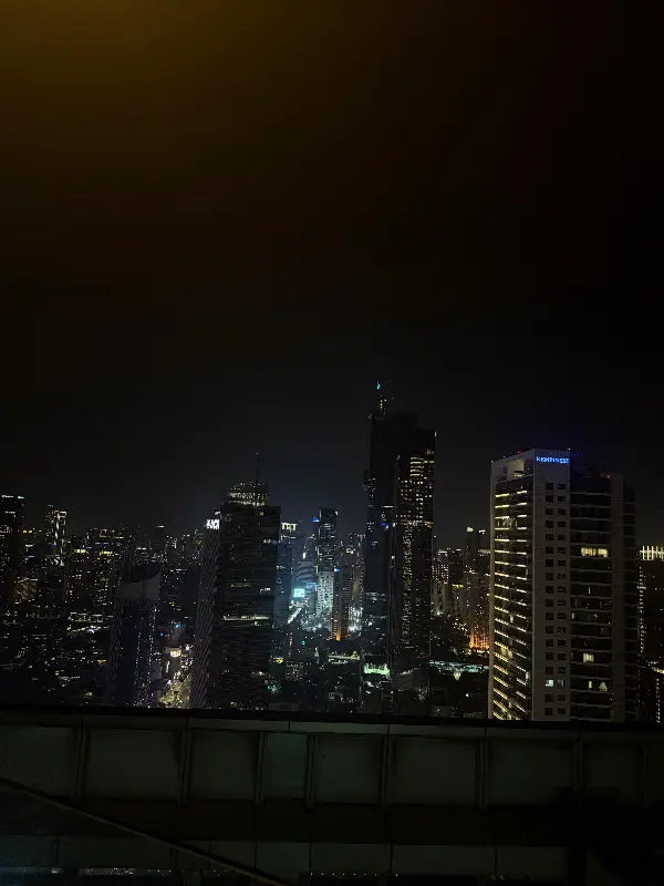 엘리베이터에서 내리자마자 눈앞에 펼쳐진 자카르타의 야경은 그야말로 장관이었습니다. 마치 하늘에서 쏟아지는 별들을 손에 잡을 수 있을 것만 같은 착각이 들 정도였습니다. 49층 높이에서 바라보는 도시는 살아있는 생명체처럼 끊임없이 움직이고 있었습니다. 자동차들의 헤드라이트 불빛은 마치 혈관 속을 흐르는 혈액처럼 쉼 없이 도시를 순환하고 있었고, 건물들의 창문에서 새어 나오는 빛은 도시의 심장이 뛰는 듯한 역동적인 느낌을 선사했습니다.