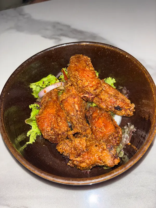 함께 주문한 샐러드는 신선한 채소와 해산물이 조화롭게 어우러져 있었습니다. 싱싱한 새우와 아삭한 야채, 그리고 톡톡 터지는 날치알의 식감이 입안 가득 퍼져 나갔습니다. 드레싱 또한 과하지 않으면서도 재료 본연의 맛을 살려주는 절묘한 조화를 이루었습니다. 사진에서 보이는 것처럼, 플레이팅 또한 매우 정갈하고 세련되어 시각적인 즐거움까지 더했습니다.