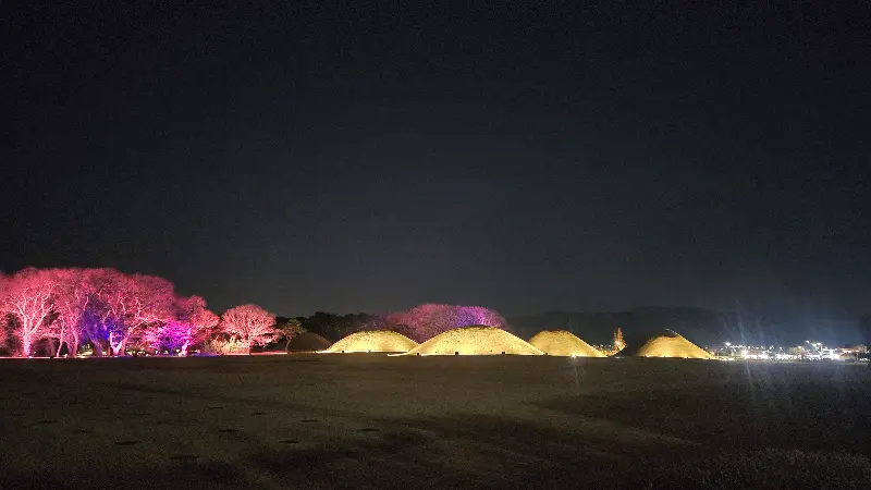 늦은 밤, 마법 같은 영상과 함께 첨성대를 감상할 수 있는 기회도 놓치지 마세요. 사람이 많으니, 직전 영상이 끝난 후 찾아가면 좋은 자리에서 관람할 수 있습니다. 해 질 무렵 방문하여 노을과 함께 첨성대를 감상하는 것도 추천합니다.