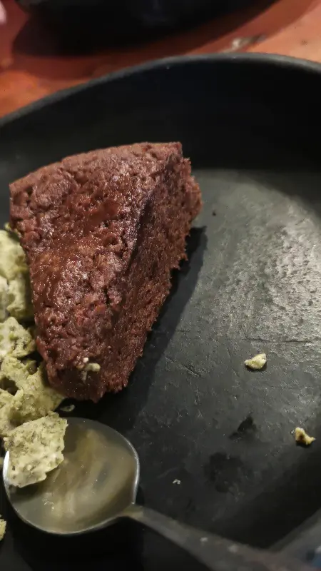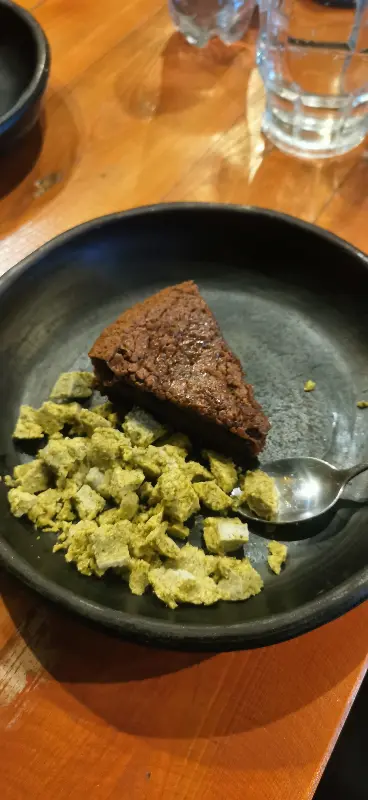디저트로는 ‘디스트럭티드 치즈케이크’와 ‘초콜릿 케이크’를 주문했다. ‘디스트럭티드 치즈케이크’는 독특한 비주얼을 자랑했다. 일반적인 치즈케이크와는 달리, 조각난 형태로 제공되었다. 맛은 훌륭했지만, 조명이 어두워 디저트의 아름다운 모습을 제대로 감상할 수 없었던 점이 아쉬웠다.