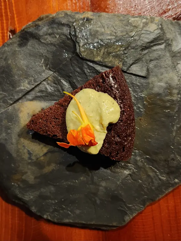 ‘초콜릿 케이크’는 ‘디스트럭티드 치즈케이크’ 토핑이 얹어져 더욱 특별했다. 진한 초콜릿 맛과 부드러운 치즈케이크의 조화는 환상적이었다. 달콤한 디저트는 식사를 마무리하는 데 완벽했다.