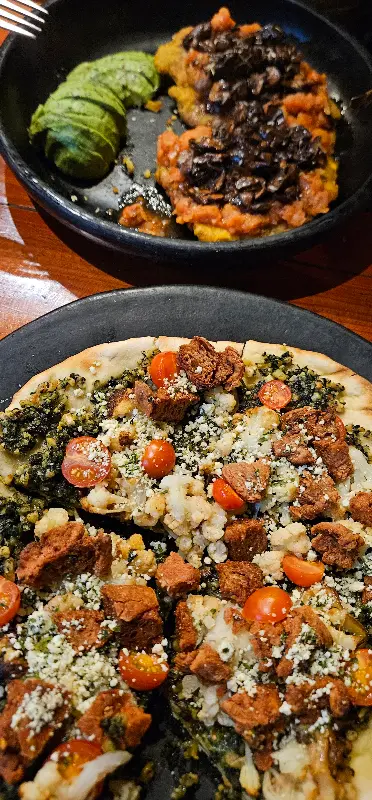 이 레스토랑은 나에게 기분 좋은 놀라움을 선사했다. 채식주의자가 아님에도 불구하고, 모든 요리가 맛있어서 평소에 먹던 음식과 다르다는 느낌이 전혀 없었다. 풍미가 넘치고 식감도 다양했으며, 플레이팅도 흠잡을 데 없었다. 특히, ‘세이탄’은 빵가루 입힌 치킨 트위스터와 맛이 똑같아서 정말 놀라웠다.