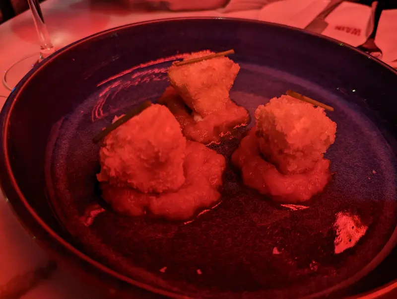 독특한 비주얼의 튀긴 브리 치즈는 WÄIN에서 꼭 맛봐야 할 메뉴 중 하나입니다.