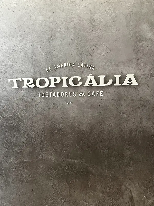 숨 가쁜 일상 속에서 잠시 벗어나, 특별한 커피와 브런치를 즐기며 여유를 만끽하고 싶어 찾은 곳, 바로 보고타의 ‘트로피칼리아(Tropicalia)’였습니다. 한국인 헤드 바리스타님의 추천으로 방문하게 된 이곳은, 문을 열고 들어서는 순간부터 마치 다른 세계에 온 듯한 느낌을 선사했습니다. 콘크리트 질감이 그대로 드러난 벽면에 새겨진 “TROPICALIA” 로고는(Image 1), 단순한 카페 이상의 예술적인 감성을 자아냈습니다.
