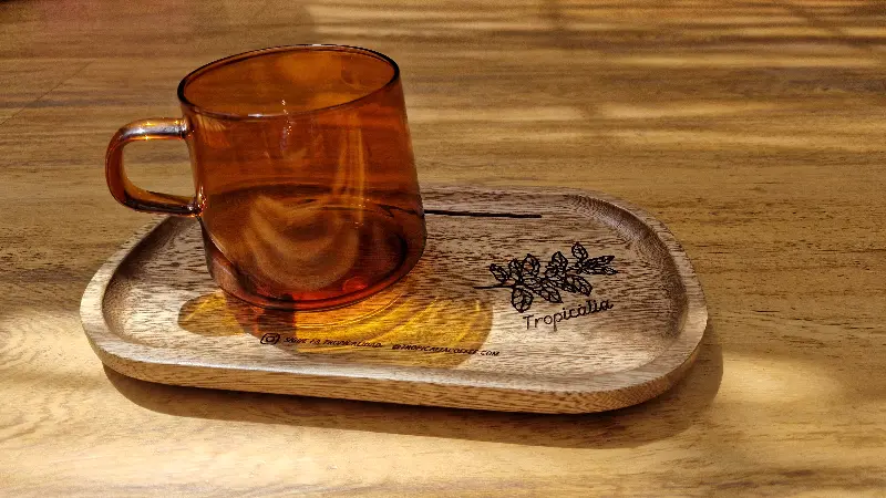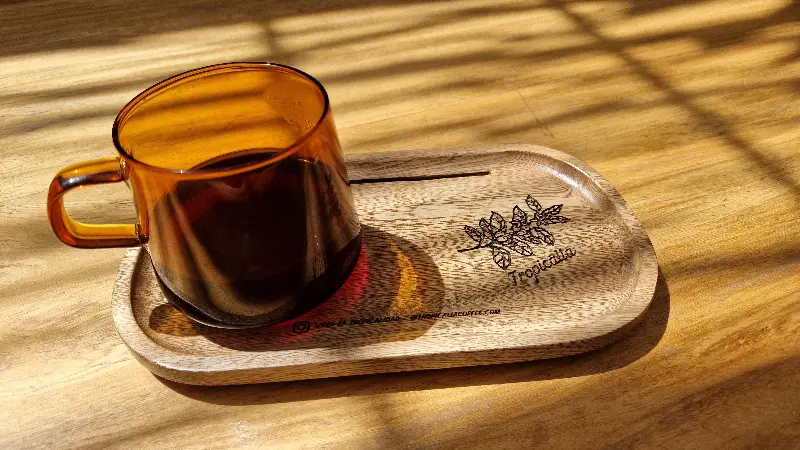 트로피칼리아에서는 다양한 종류의 커피 원두를 맛볼 수 있습니다. 특히 치로소(CHIROSO) 원두는 미디엄 로스팅에 햇볕에 말린 원두로, 달콤한 뒷맛과 은은한 산미가 특징입니다. 라이트 로스팅 원두를 선호하는 저에게는 다소 아쉬웠지만, 트로피칼리아만의 특별한 커피 경험을 선사했습니다. 낮은 온도에서 추출했다는 점도 독특했습니다.