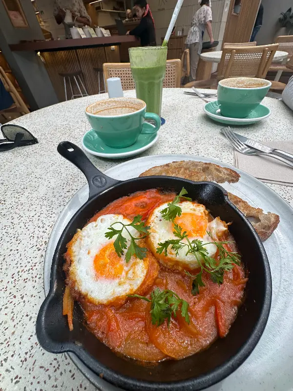 트로피칼리아의 메뉴는 중동 요리와 콜롬비아 전통 요리가 조화롭게 어우러진 퓨전 스타일입니다. 요거트를 곁들인 수란(라브네)이나 샤크슈카(인도식 스튜) 등 독특한 메뉴들이 눈길을 사로잡았습니다. 색다른 음식을 맛보고 싶어 샤크슈카를 주문했는데, 매콤하면서도 깊은 풍미가 인상적이었습니다. 특히 신선한 채소와 향신료가 어우러져 이국적인 맛을 선사했습니다.