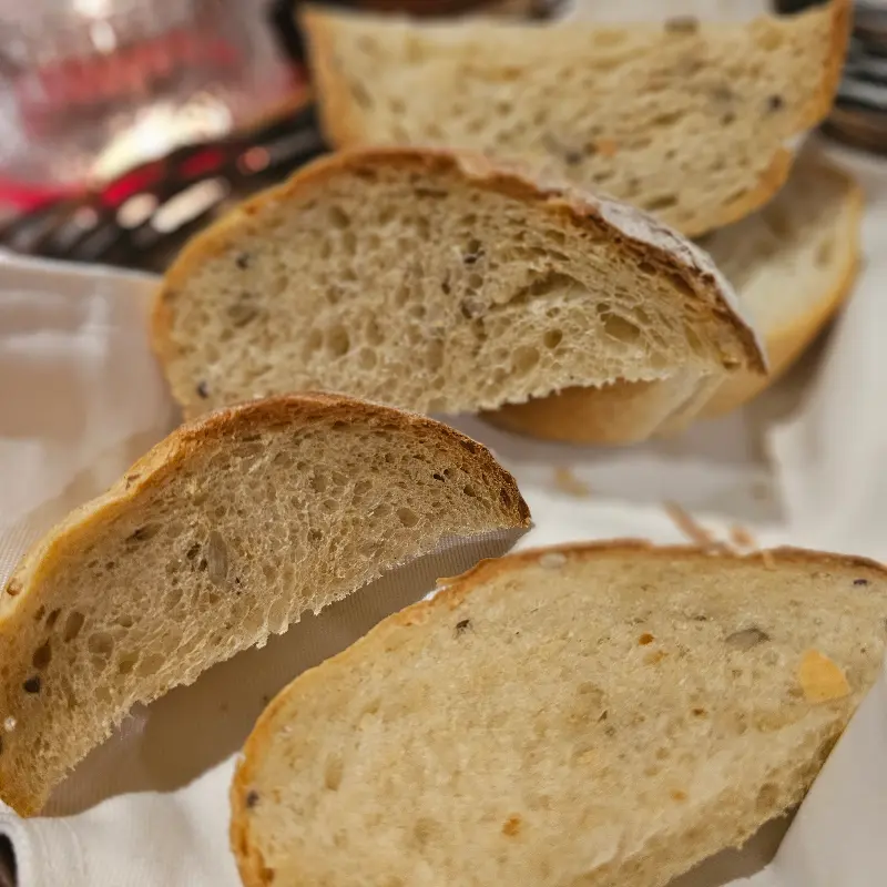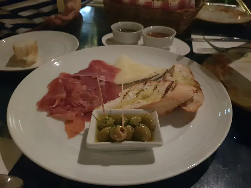 도스 메스티조스의 메뉴는 다양한 스페인 요리로 구성되어 있었다. 그 중에서도 가장 인기 있는 메뉴는 단연 빠에야와 감바스였다. 우리는 리뷰에서 극찬한 먹물 오징어 빠에야 스몰 사이즈와 새우 감바스를 주문했다. 주문 후 얼마 지나지 않아, 식전 빵이 먼저 나왔다.