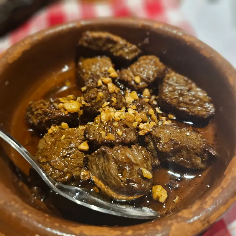 감바스 역시 기대 이상의 맛을 자랑했다. 올리브 오일에 마늘과 새우를 넣어 끓인 감바스는, 그 풍부한 향과 맛으로 미식가들의 입맛을 사로잡는 대표적인 스페인 요리다. 도스 메스티조스의 감바스는 신선한 새우의 탱글탱글한 식감과 매콤한 풍미가 완벽하게 어우러져, 빵과 함께 먹으니 그 맛이 배가 되었다.