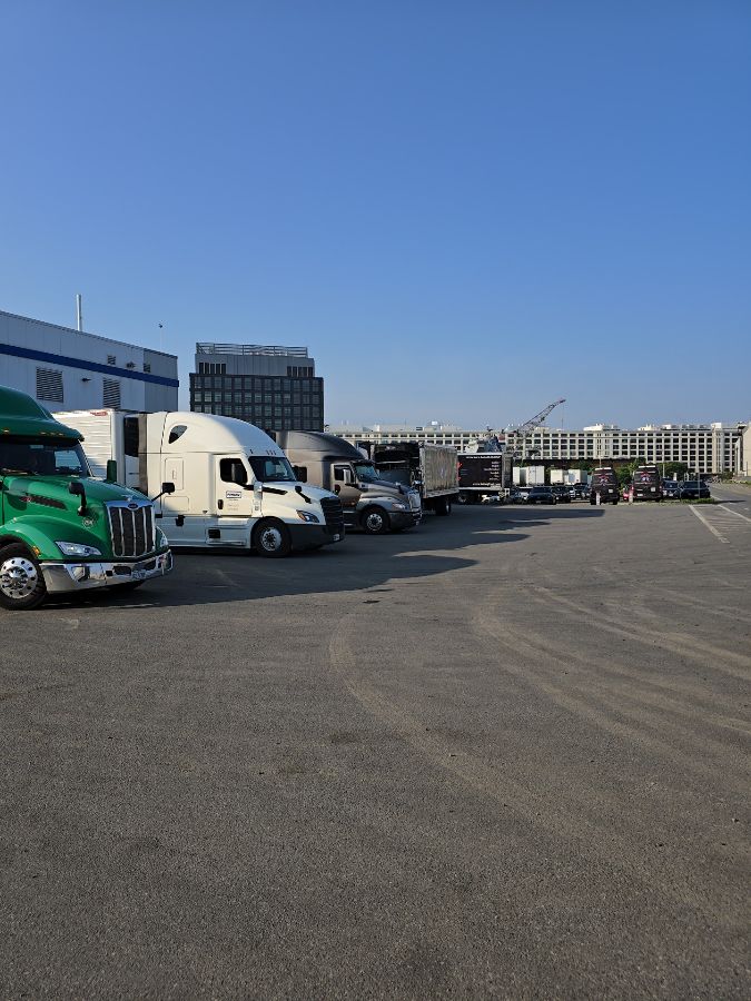 주차장은 여러 대의 트럭들이 편안하게 정차할 수 있을 만큼 넉넉하며, 햇살 가득한 낮에는 그 규모가 더욱 웅장하게 느껴집니다. 멀리 보이는 건물들과 크레인의 모습은 이곳이 항구 도시 보스턴의 핵심 물류 거점임을 다시 한번 상기시켜 줍니다. 마치 잘 짜여진 거대한 기계처럼, 이곳은 멈추지 않고 신선한 해산물을 유통하며 도시의 미식 문화를 지탱하고 있습니다.