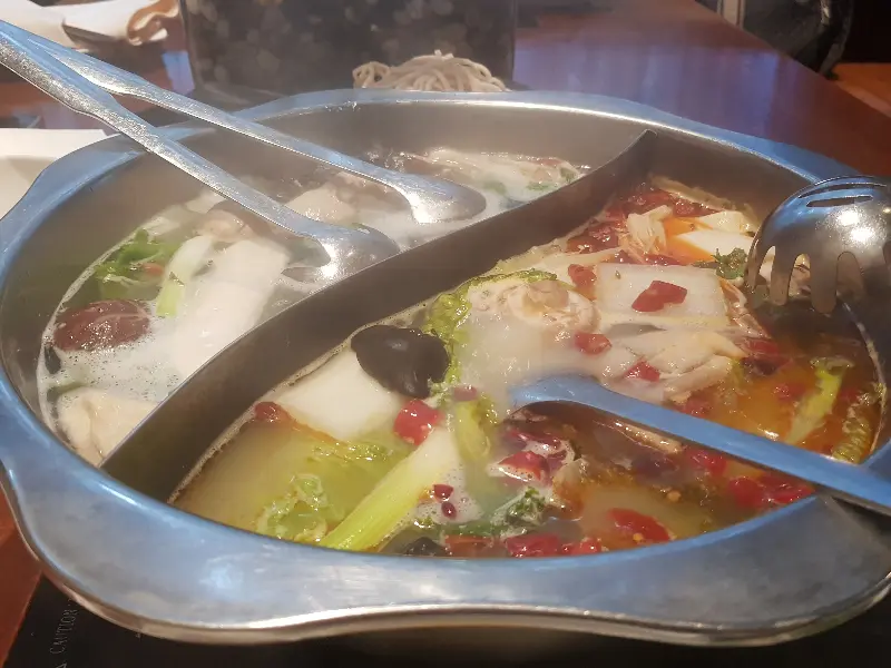 고민 끝에 기본 육수와 크레이지 마라 육수를 반반 선택하고, 각종 야채와 해산물, 그리고 소고기와 양고기를 추가했다. 특히 크레이지 마라 육수는 한국인의 입맛에도 잘 맞는 얼얼한 매운맛이라고 해서 기대를 안고 주문했다. 훠궈 외에도 차우면, 딤섬 등 다양한 메뉴가 있었지만, 이날은 훠궈에 집중하기로 했다.