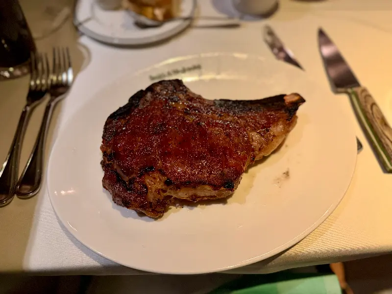 스미스 앤 울렌스키의 간판 메뉴는 단연 28일간 숙성된 USDA 프라임 쇠고기 스테이크입니다. 가게 안에서 직접 손질하는 이 스테이크는, 겉은 바삭하고 속은 촉촉한 완벽한 조화를 자랑합니다. 첫 입을 베어 무는 순간, 입안 가득 퍼지는 풍부한 육즙과 깊은 풍미는 감탄을 자아냅니다.