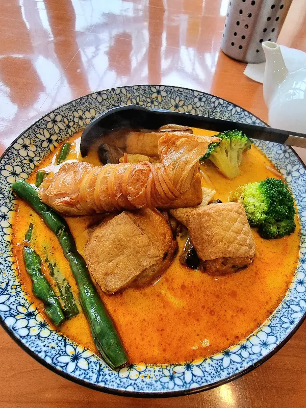 함께 간 친구는 나시고렝을 주문했는데, 보자마자 감탄사가 절로 나왔다. 먹음직스러운 비주얼은 물론, 풍성한 양에 다시 한번 놀랐다. 한 입 맛보니, 입안에서 펼쳐지는 풍미가 정말 예술이었다. 락사는 제가 먹어본 비건 락사 중에 단연 최고였다. 국물은 깊고 진하면서도 느끼하지 않았고, 면은 쫄깃했다. 특히, 락사에 들어간 채소와 두부의 조화가 훌륭했다.