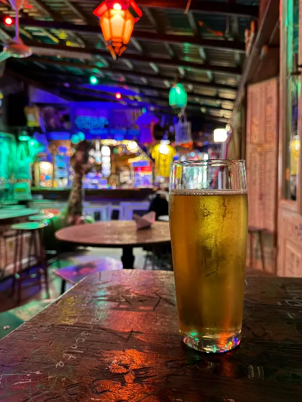 낮에는 또 다른 분위기가 펼쳐진다고 한다. 밤의 활기 넘치는 분위기와는 달리, 낮에는 좀 더 조용하고 여유로운 시간을 보낼 수 있다고 한다. 만약 조용한 분위기를 선호한다면 낮에 방문하는 것을 추천한다. 이미지 3에서 보이는 화려한 조명과 낙서로 가득한 피아노는 밤의 루인 바가 얼마나 활기찬 분위기인지 짐작하게 한다.