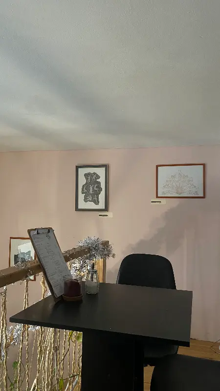 카페 문을 열자마자 눈에 들어온 것은 앤티크 가구와 식물들이 조화롭게 어우러진 인테리어였다. 벽에는 갤러리처럼 사진 작품들이 걸려 있어, 마치 예술가의 작업실에 들어온 듯한 느낌을 받았다. 은은한 조명 아래, 테이블마다 놓인 작은 꽃병은 공간에 생기를 더했다.
