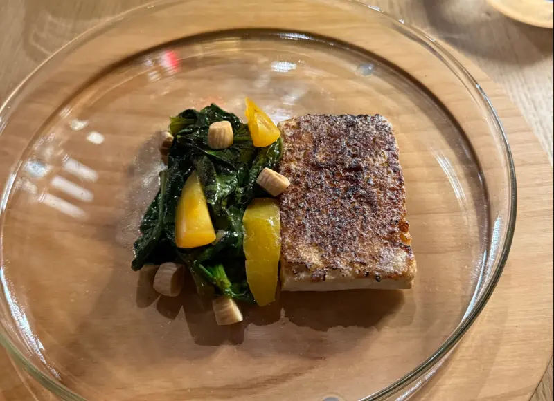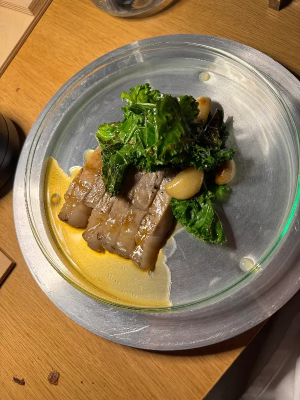 직원들의 따뜻하고 전문적인 환영 인사는 기대 이상이었다. 자리에 앉자마자 세심한 주의를 기울여 각 코스를 설명해 주었고, 서빙 전에는 요리에 얽힌 이야기를 들려주어 식사 경험을 더욱 풍성하게 만들어 주었다. 마치 특별한 손님이 된 듯한 기분을 느낄 수 있었다. 2026년 1월 7일 방문 당시, 유럽 어디에서도 이 가격대에 이런 수준의 서비스를 경험하기는 어려울 것이라는 생각이 들었다.
