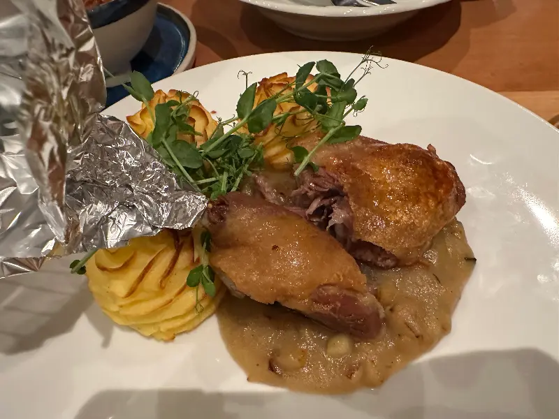 ‘송아지 푀르쾰트’와 ‘사슴고기 스튜’는 기대했던 것만큼 부드럽지는 않았지만, 독특한 풍미가 인상적이었다. 특히 사슴고기는 지방질이 적어 다소 뻑뻑했지만, 강렬한 육향이 매력적이었다. 마치 야생의 기운을 그대로 담은 듯한 느낌이랄까. 색다른 고기 요리를 경험하고 싶다면 추천할 만하다.