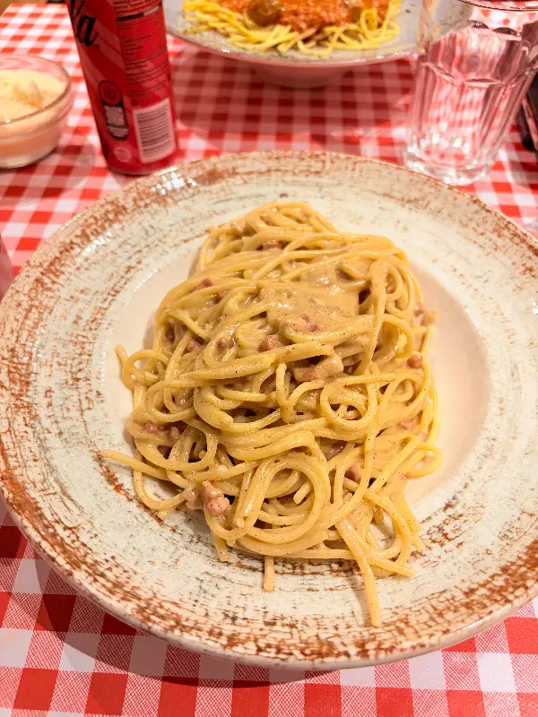 메뉴판을 펼치니 다양한 종류의 파스타가 눈길을 사로잡습니다. 미트볼 시칠리아, 까르보나라… 고민 끝에 Spagetti Crema Pancetta와 미트볼 시칠리아를 주문했습니다. 특히 Spagetti Crema Pancetta는 까르보나라와 비슷하지만 다른 레시피라고 설명되어 있어 더욱 기대감을 높였습니다.