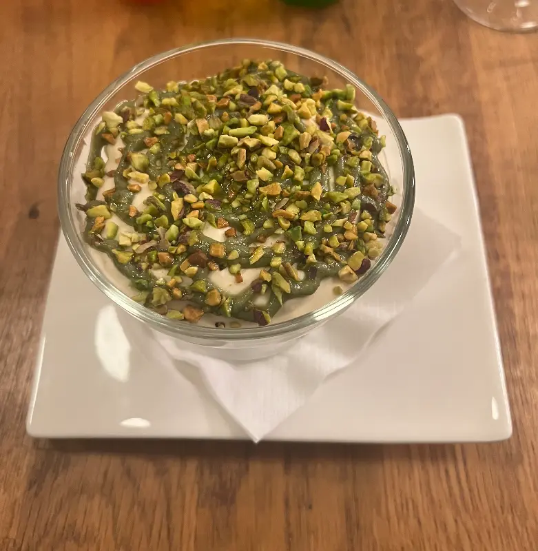 피스타치오 토핑이 듬뿍 올려진 디저트는 달콤한 마무리를 선사한다. 식사 후 디저트는 필수 코스다.