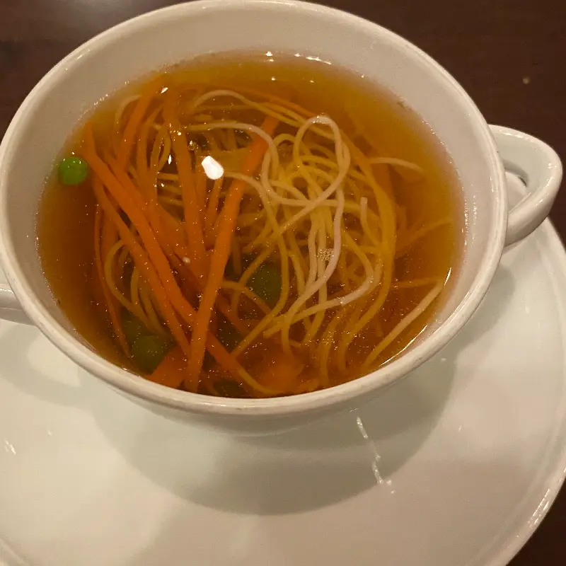 따뜻한 스프는 속을 부드럽게 달래주는 역할을 했다. 섬세하게 채 썰어진 채소들이 담백한 국물과 어우러져 깔끔한 맛을 냈다. 스프를 한 입, 빵을 한 입 번갈아 먹으니, 입안 가득 행복감이 밀려왔다.