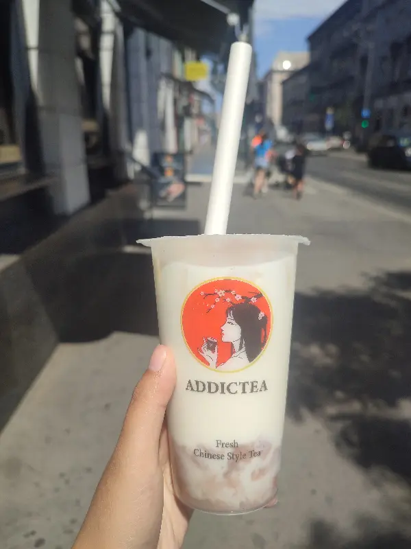 ADDICTEA 로고가 선명한 밀크티. 다음에는 다른 음료를 마셔봐야겠다.