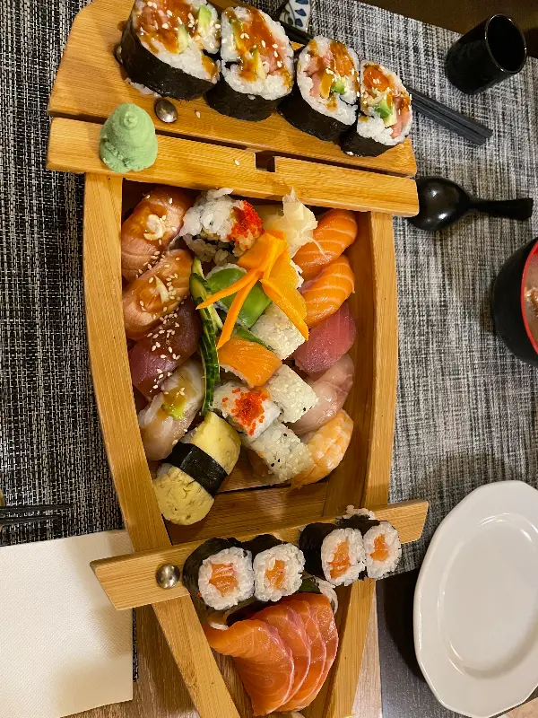 메뉴판을 펼쳐 들고 한참을 고민했다. 스시, 라멘, 덮밥 등 다양한 메뉴들이 눈길을 사로잡았다. 고민 끝에 선택한 메뉴는 초밥 세트와 닭고기 라멘. 잠시 후, 정갈하게 차려진 음식이 테이블에 놓였다. 알록달록한 색감의 초밥은 보기만 해도 군침이 돌았다.