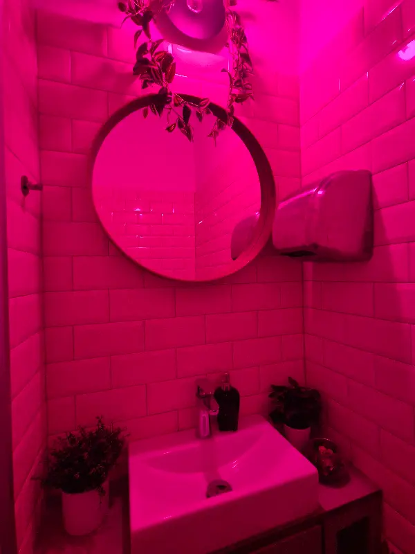 화장실마저도 Warm Up Bar만의 개성이 묻어난다. 강렬한 핑크빛 조명 아래 놓인 둥근 거울과 작은 화분들은 마치 예술 작품처럼 느껴진다. 칵테일 한 잔을 마시고 화장실에 들렀을 뿐인데, 예상치 못한 즐거움을 얻은 기분이었다.