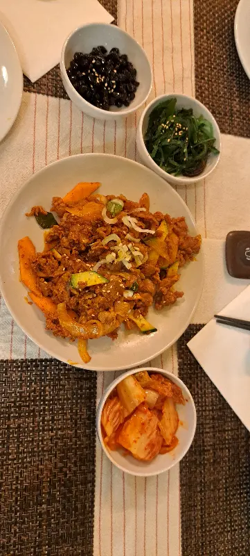 자리에 앉자마자 밑반찬이 나왔습니다. 잘 익은 배추김치, 아삭한 무말랭이, 달콤한 콩자반. 오랜만에 맛보는 한식 밑반찬에 저도 모르게 미소가 지어졌습니다. 특히 김치는 시원하고 칼칼한 맛이 일품이었습니다. 마치 엄마가 직접 담가준 김치처럼 깊은 맛이 느껴졌습니다. 밑반찬을 맛보며 메뉴를 고르는데, 정말 다양한 한식 메뉴들이 있었습니다. 김치찌개, 된장찌개, 비빔밥, 제육볶음, 떡볶이, 짜장면… 정말 고민되는 순간이었습니다.