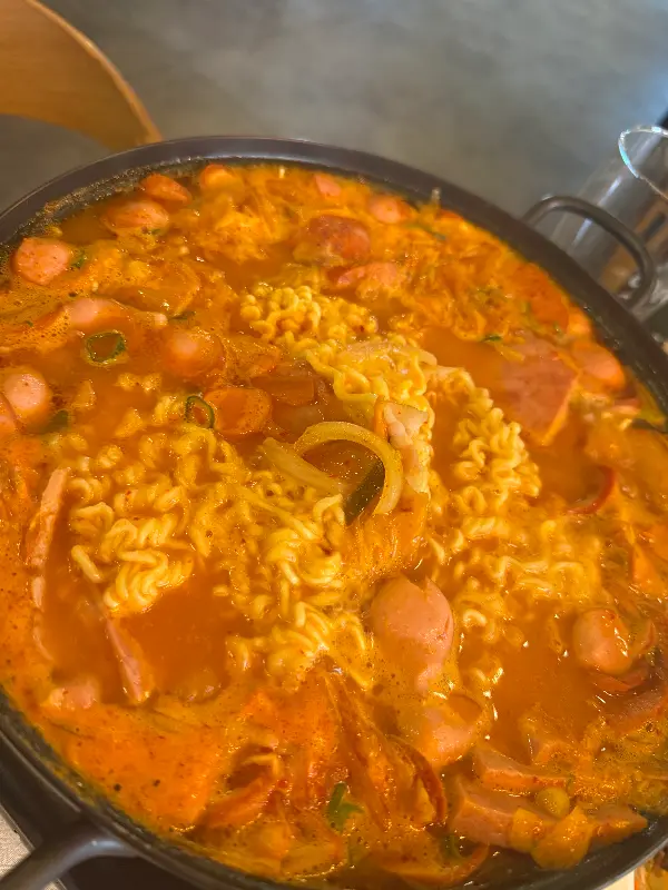 제육볶음은 매콤하면서도 달콤한 맛이 정말 최고였습니다. 윤기가 자르르 흐르는 제육볶음을 상추에 싸서 먹으니 정말 꿀맛이었습니다. 떡볶이는 쫄깃한 떡과 매콤달콤한 양념이 환상적인 조화를 이루었습니다. 특히 유럽에서 먹는 떡볶이 중에는 후추 맛이 강한 곳들이 많은데, Buda K Bistro의 떡볶이는 정말 한국에서 먹는 떡볶이와 똑같은 맛이었습니다.
