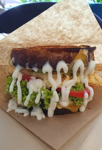 드디어 주문한 토리카츠 에그드랍이 나왔다. 노릇하게 구워진 브리오슈 빵 사이에 듬뿍 담긴 양배추와 갓 튀겨진 토리카츠, 그리고 특제 소스가 어우러진 모습이 정말 먹음직스러웠다. 한 입 베어 무니, 바삭한 토리카츠와 부드러운 닭다리살의 조화가 환상적이었다. 특히, 소스의 달콤함과 양배추의 신선함이 느끼함을 잡아주어 정말 맛있었다.