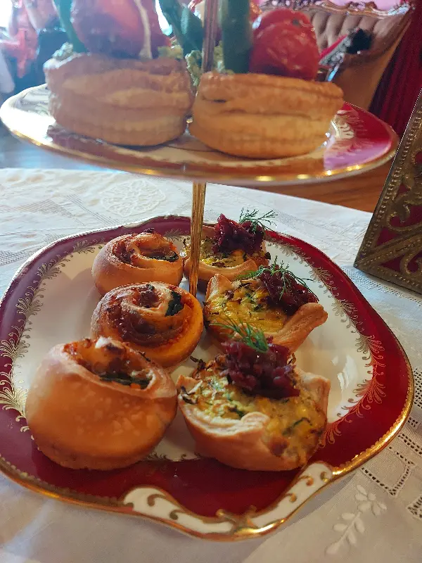 가장 먼저 나온 세이버리는 신선한 재료를 사용하여 만든 샌드위치와 미니 키슈였습니다. 빵은 촉촉하고 속 재료는 풍성했으며, 입안 가득 퍼지는 풍미는 훌륭했습니다. 특히, 훈제 연어 샌드위치는 짭짤하면서도 부드러운 맛이 일품이었습니다.