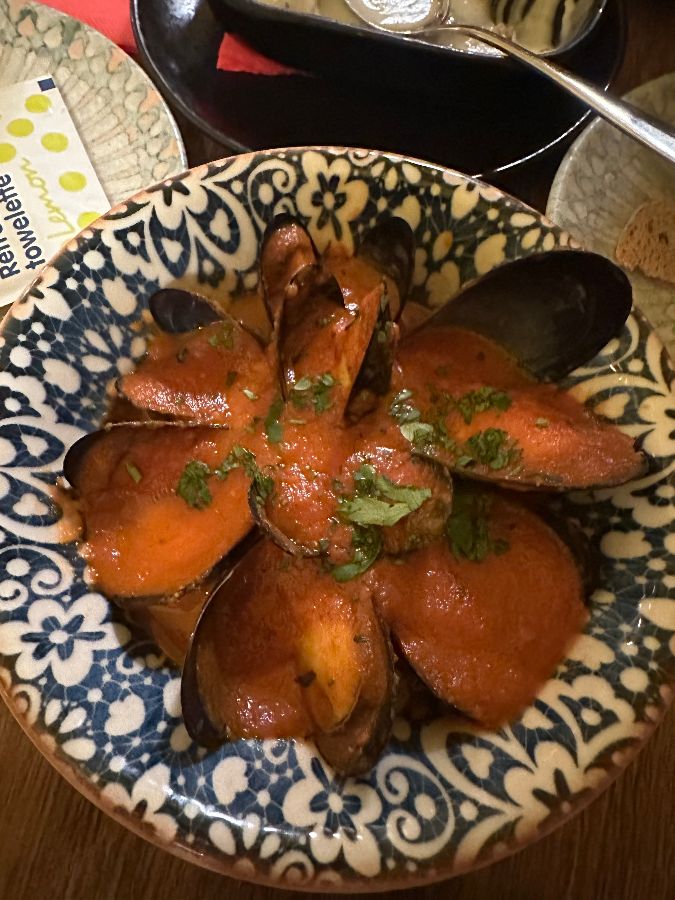 TAPASIO의 해산물 타파스는 미식가들의 입맛을 사로잡는 대표 메뉴입니다. 그중에서도 매콤한 토마토 소스를 곁들인 홍합 요리는 독특하면서도 중독성 있는 맛으로 많은 사랑을 받습니다. 통통하게 살이 오른 홍합은 부드러운 식감과 함께 입안 가득 바다의 풍미를 선사하며, 매콤한 소스는 느끼함을 잡아주고 식욕을 돋웁니다. 아기자기하면서도 고급스러운 접시에 담겨 나오는 홍합 요리는 그 자체로 예술 작품 같아 눈으로 한 번, 입으로 또 한 번 즐거움을 선사합니다.