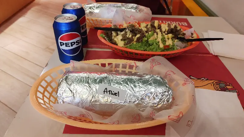 자리에 앉아 메뉴판을 펼쳐 들었다. 다양한 텍스멕스 요리들이 눈길을 사로잡았지만, 우리의 선택은 단연 ‘부리또’였다. 나차의 부리또는 원하는 대로 속 재료를 선택하여 나만의 부리또를 만들 수 있다는 점이 매력적이다.