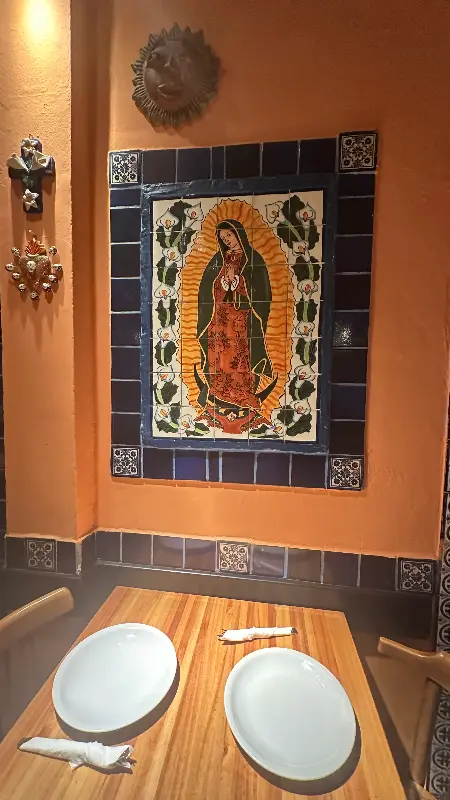 레스토랑 내부는 멕시코의 다채로운 색감과 아늑한 분위기가 조화롭게 어우러져 있습니다. 벽면을 장식한 타일 그림은 마치 멕시코의 작은 마을에 와있는 듯한 착각을 불러일으킵니다. 은은하게 빛나는 조명 아래, 사람들의 웃음소리가 끊이지 않는 활기찬 분위기가 인상적입니다. 멕시코 특유의 장식품들이 눈길을 사로잡으며, 이곳이 단순한 식당이 아닌 멕시코 문화의 정수를 경험할 수 있는 공간임을 느끼게 합니다.