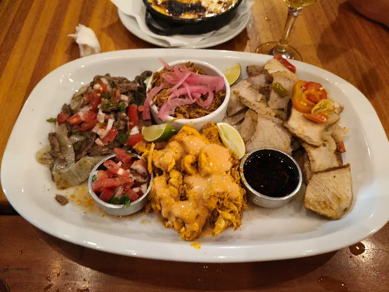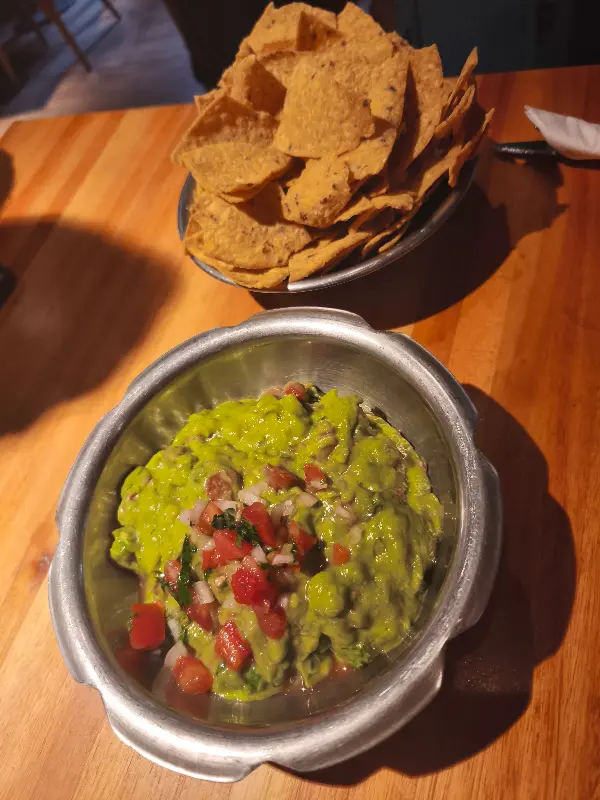 고민 끝에 먼저 나초와 케소 푼디도를 주문했습니다. 바삭하게 튀겨진 나초는 짭짤하면서도 고소한 맛이 일품입니다. 특히, 함께 제공되는 살사 소스는 신선한 토마토와 양파의 풍미가 그대로 살아있어 나초의 맛을 한층 더 끌어올립니다.